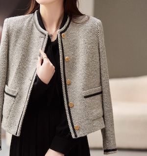 着用するだけで上品でエレガントな雰囲気が漂うカラーレスエレガントシングルブレストショートジャケット。