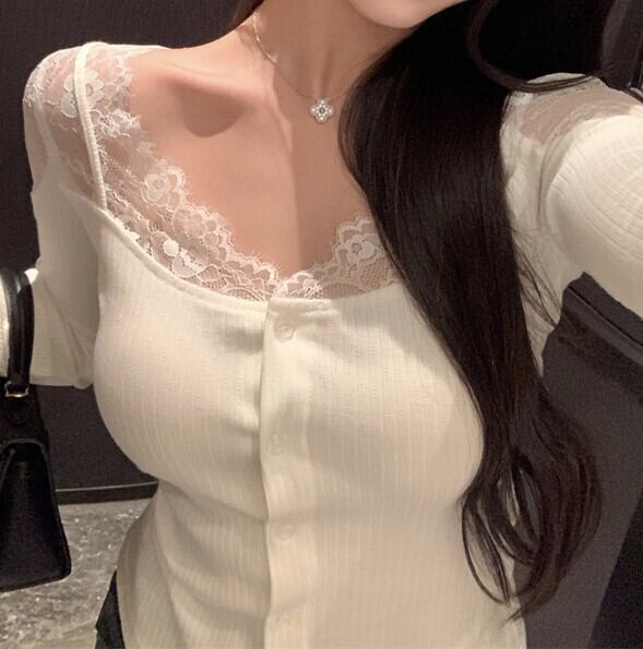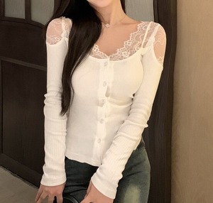 着用するだけでフェミニンな雰囲気が漂うレースステッチエレガントスリムフィットニット。