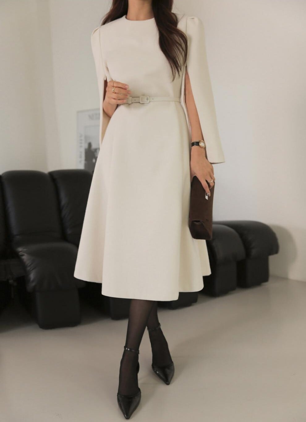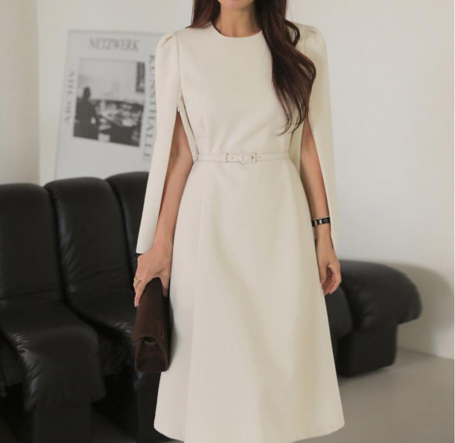 着用するだけでフェミニンな雰囲気が漂うエレガントレースアップウエストスリムケープドレス。