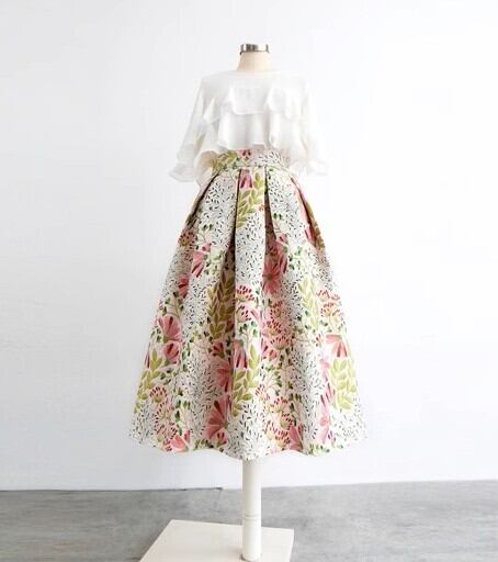 着用するだけで上品でエレガントな雰囲気が漂うハイウエストエレガントジャガードフローラルパフィースカート。