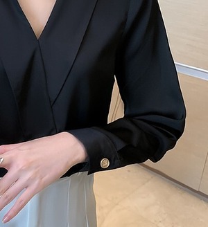 Polo collar elegant v neck retro chiffon shirt ( 2color )