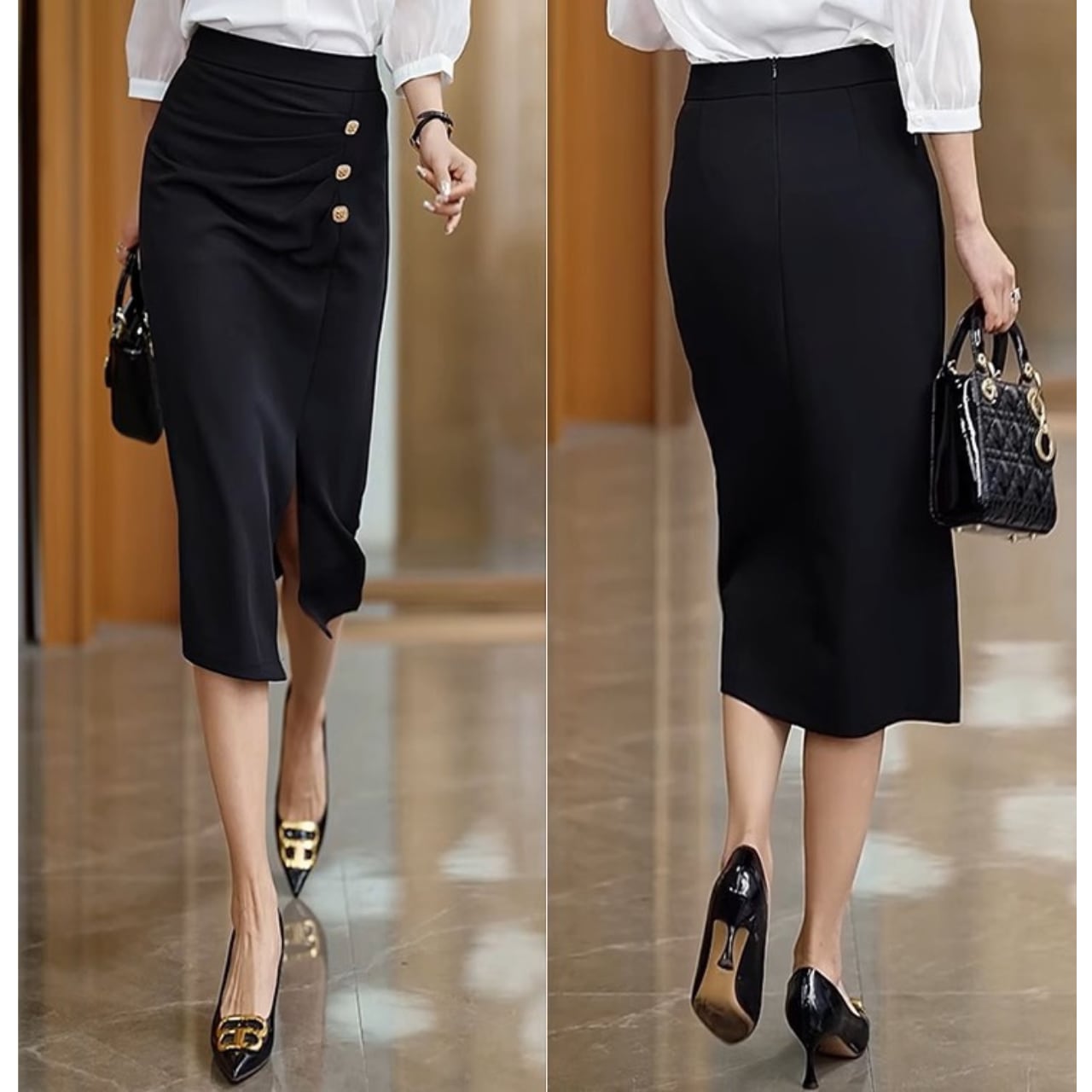 High waist elegant front slit one step skirt ( 2color )