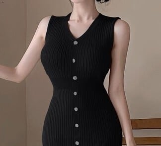 Single breast elegant slim fit knit dress ( 2color )