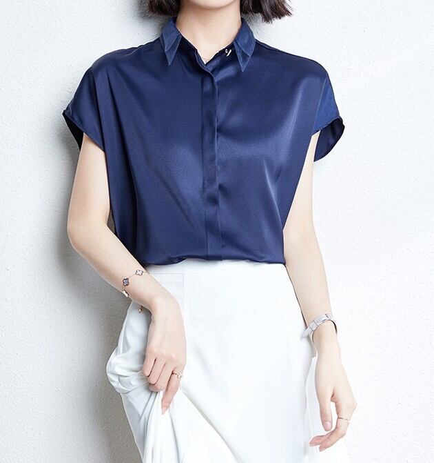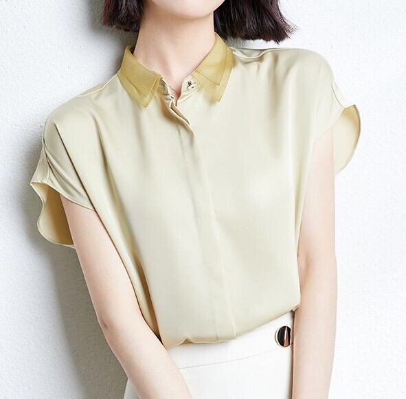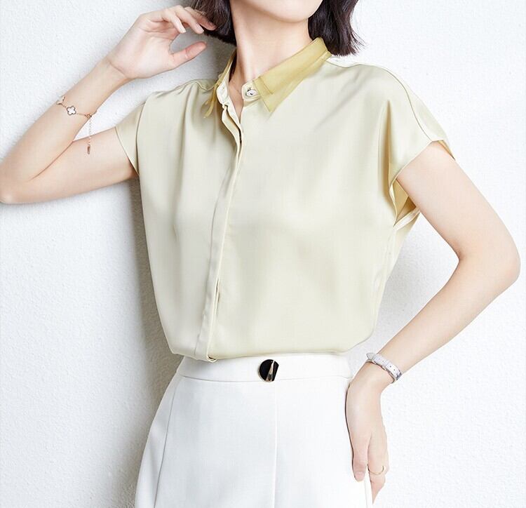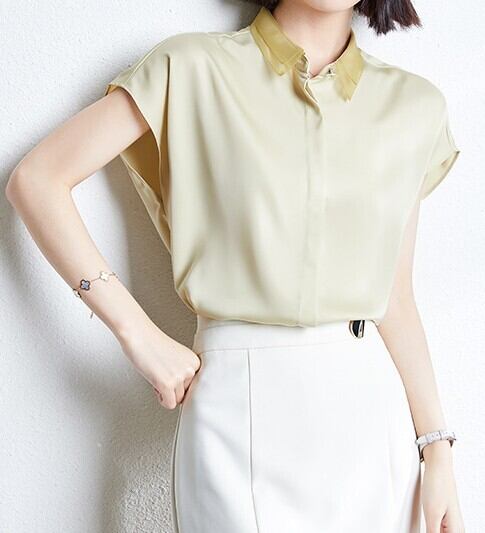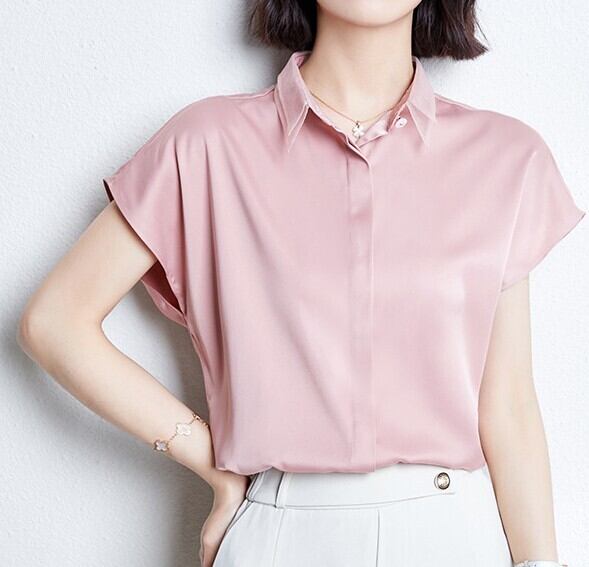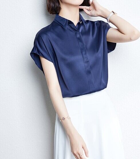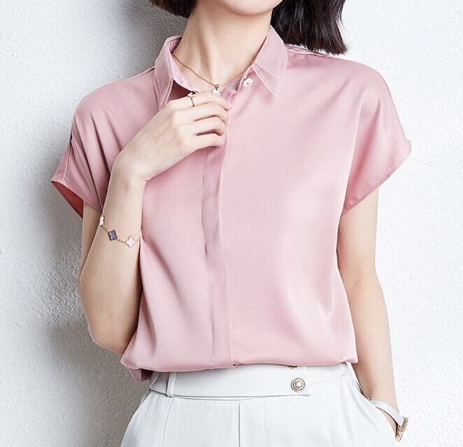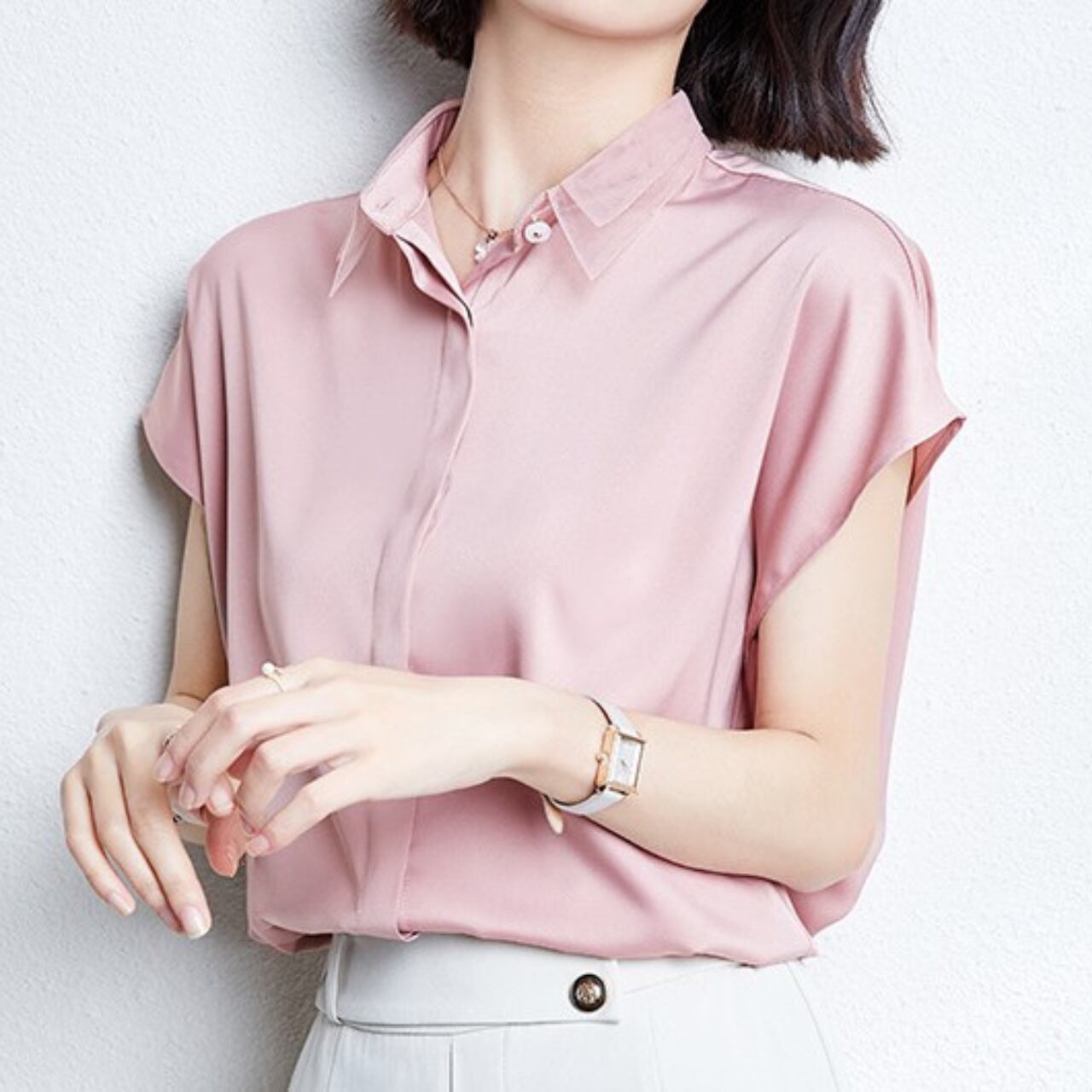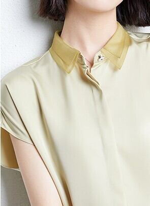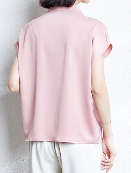 着用するだけで大人可愛い雰囲気が漂うメッシュカラーエレガントスリットスリムシフォンシャツ 。