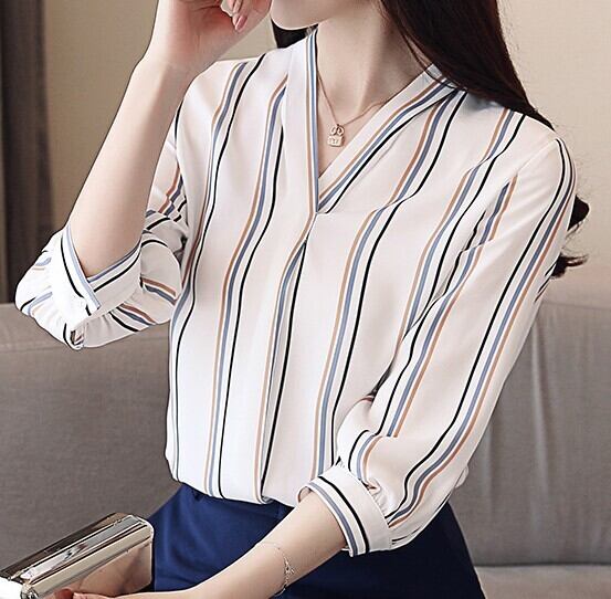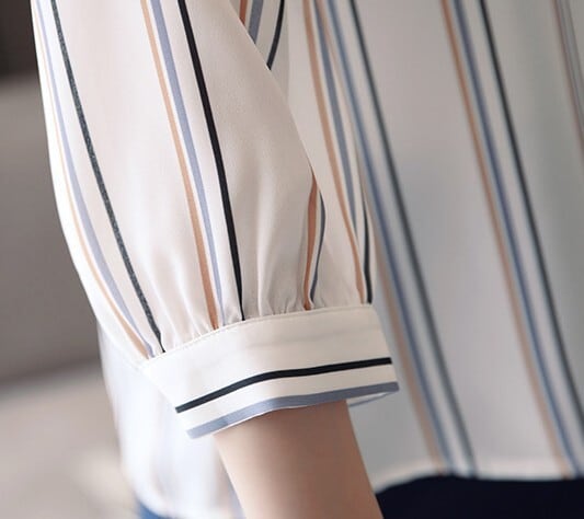 V neck elegant three quarter sleeve stripe chiffon shirt
