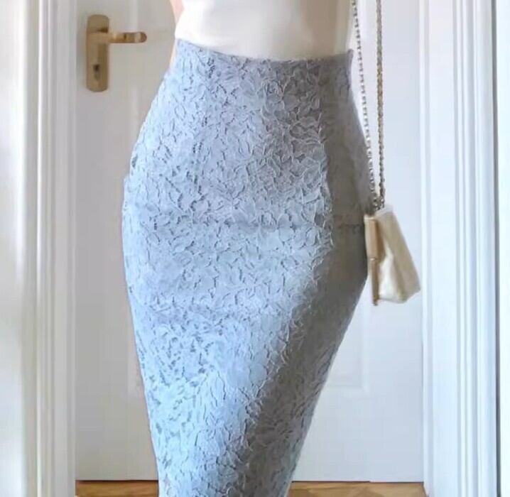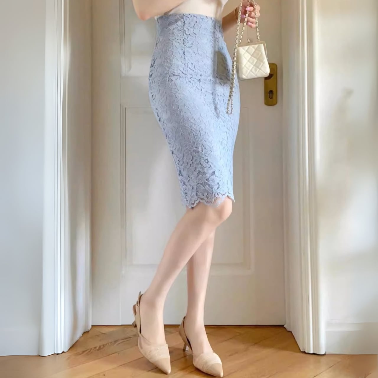 華やかなレースと花柄でフェミニンな印象のハイウエストエレガントスリムフィットレーススカート 。