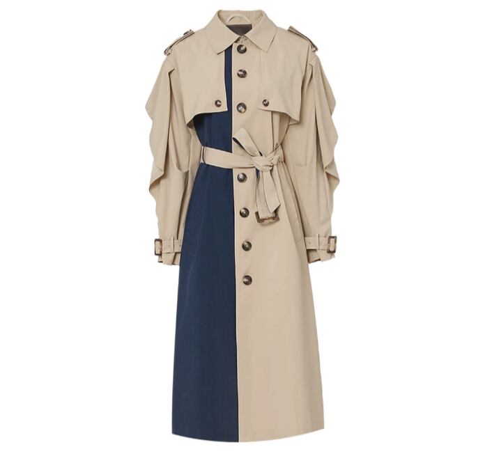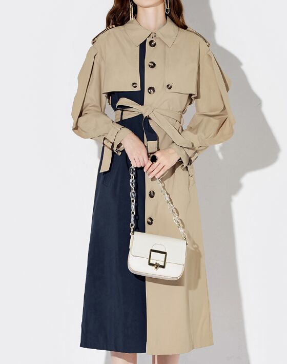 Single breast elegant two tone slim trench coat