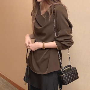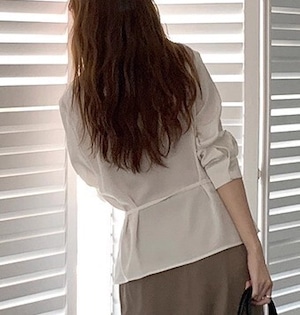 1枚着用するだけでフェミニンコーデが完成するエレガントレースアップストラップシャツ。