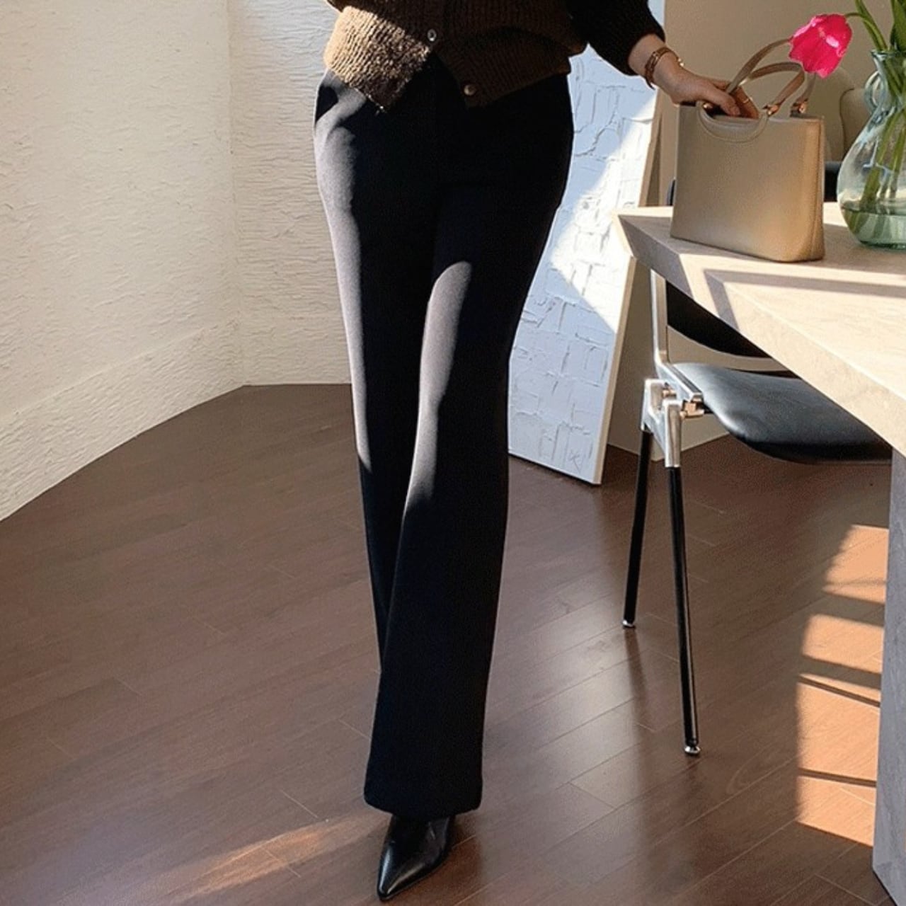 着用するだけでフェミニンな雰囲気が漂うハイウエストエレガントベルベットワイドレッグパンツ。