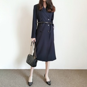 着用するだけでエレガントな雰囲気が漂うスーツカラーエレガントダブルブレストストラップスリムドレス。