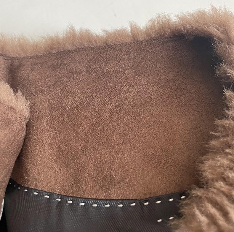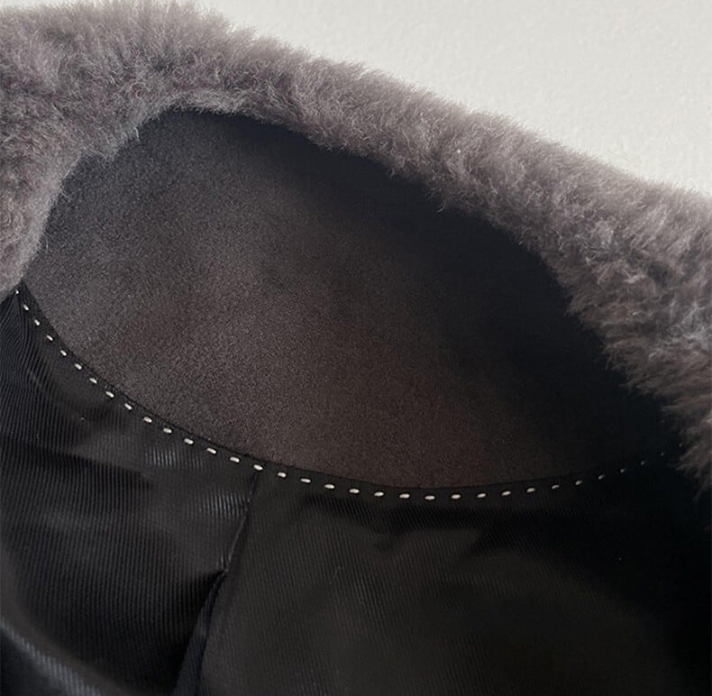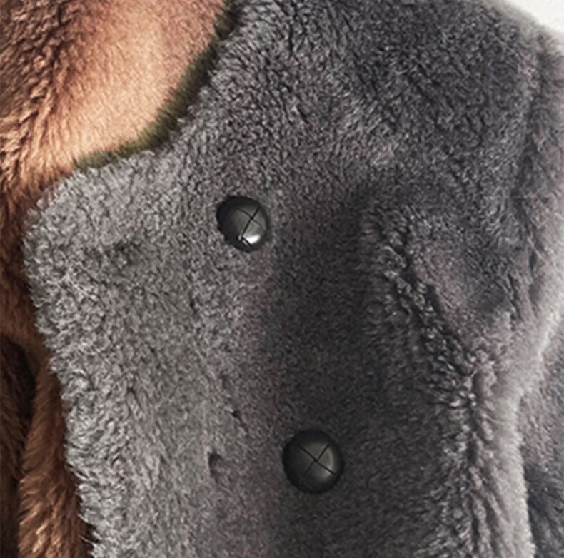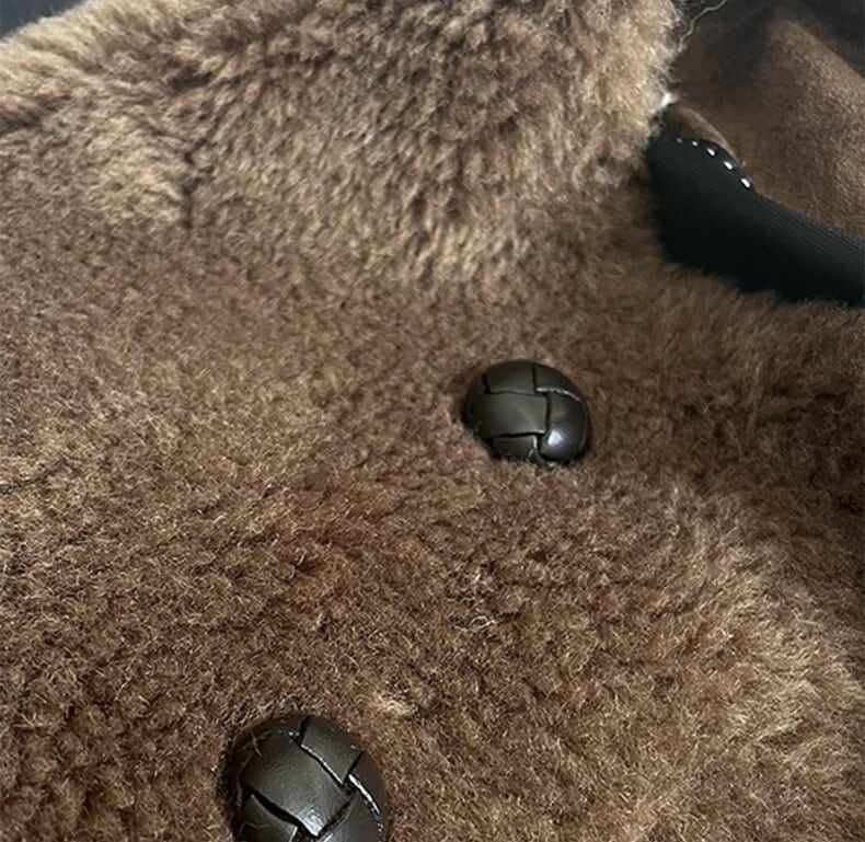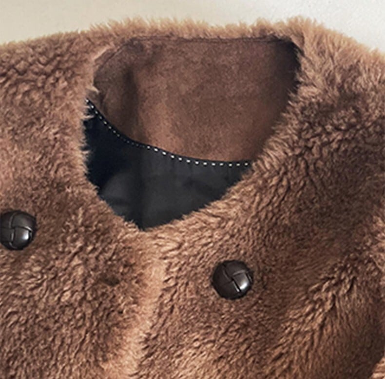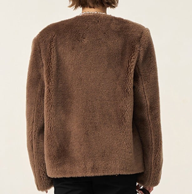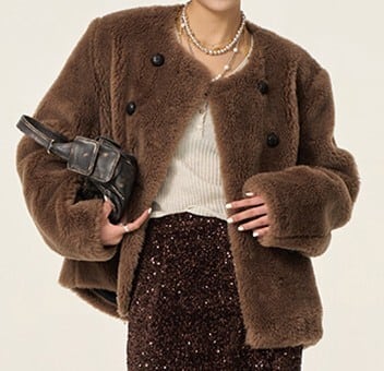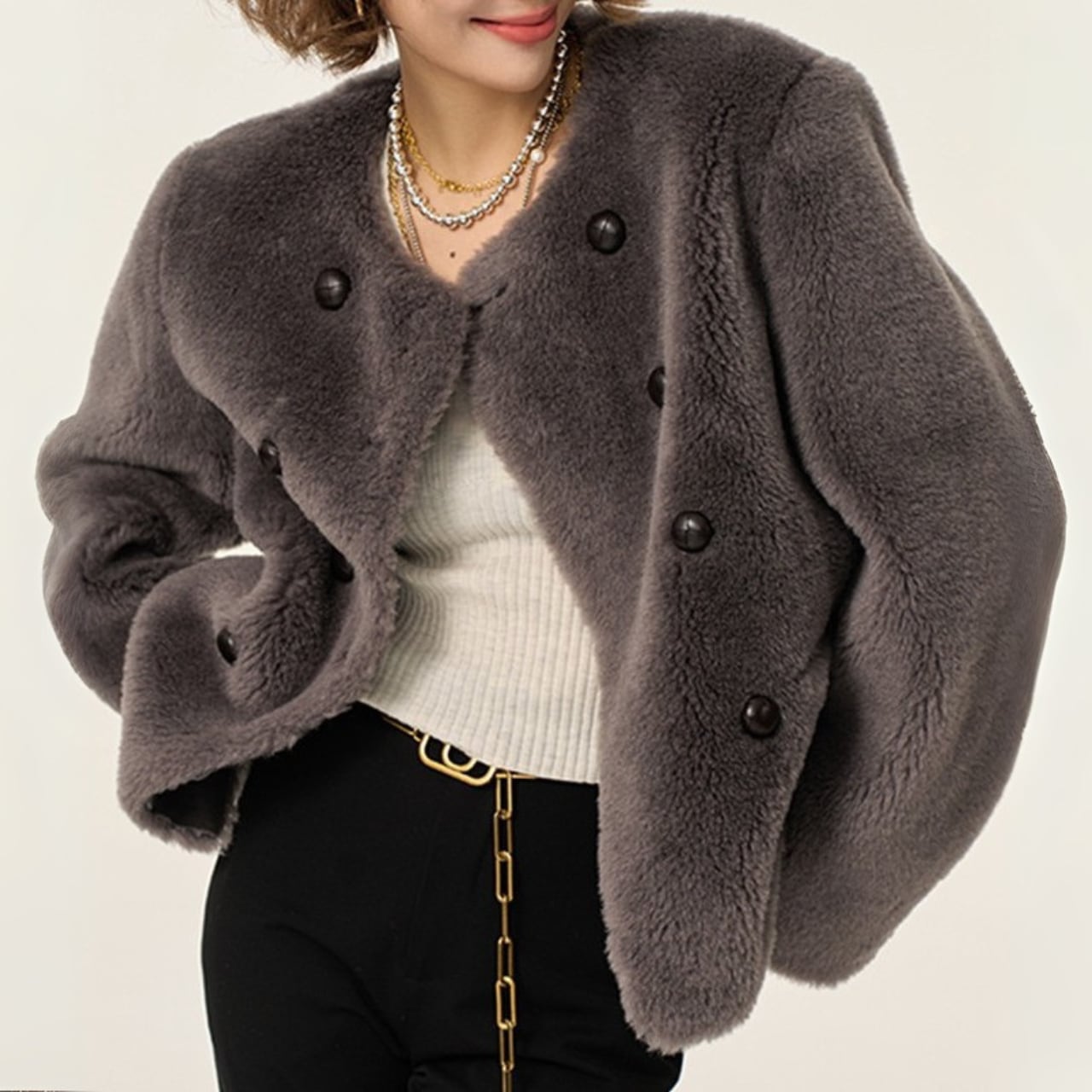 着用するだけでフェミニンな雰囲気が漂うダブルブレストエレガントベルベットファージャケット。
