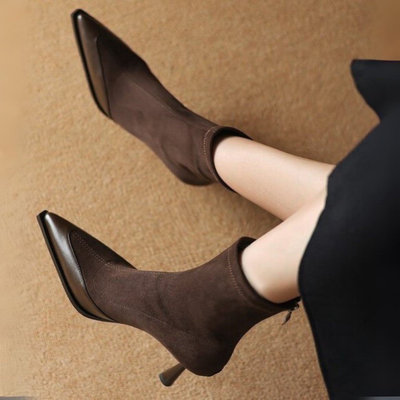 Stiletto heel elegant suede short boots ( 2color )