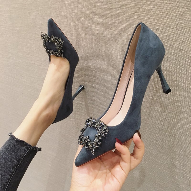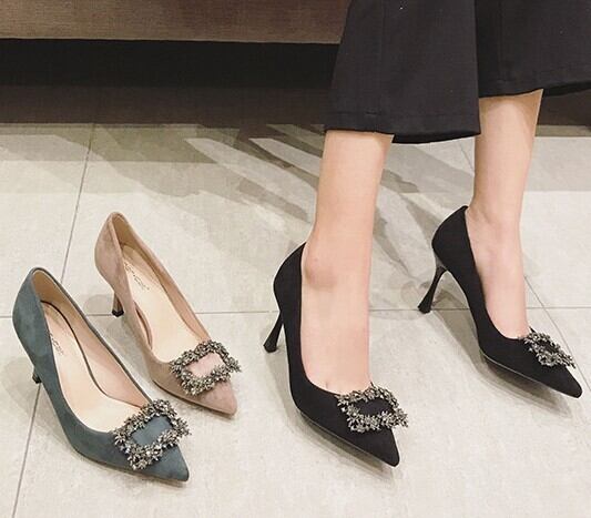 Rhinestone buckle elegant stiletto pumps ( 3color )
