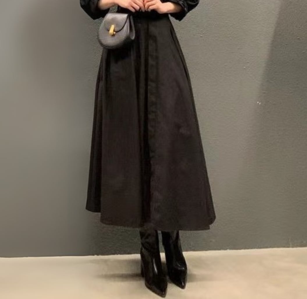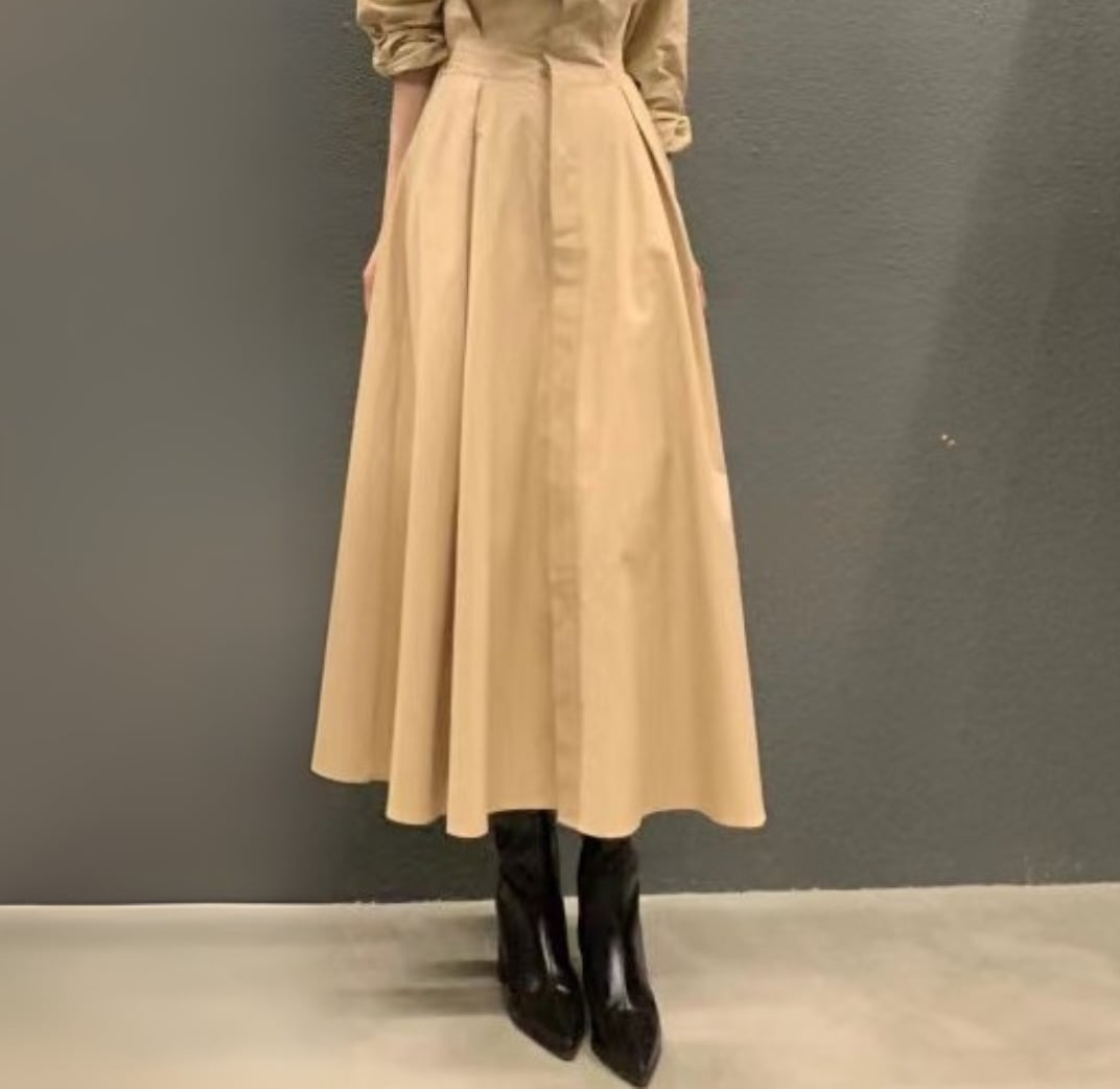 ハイウエスト、ラージスイングデザインがスタイルを引き締めます。
