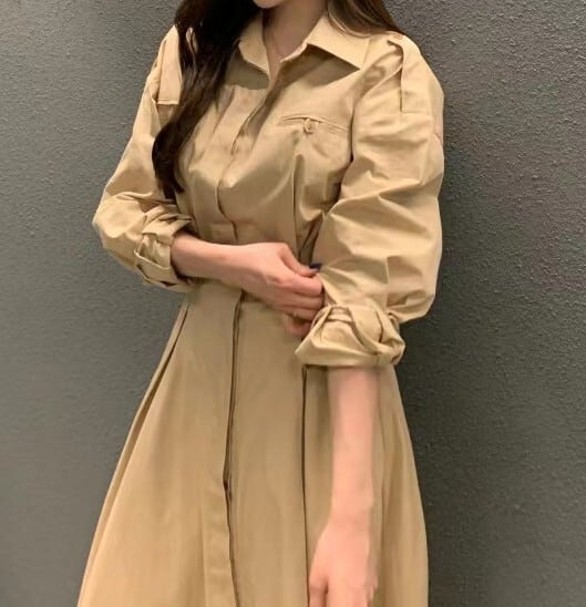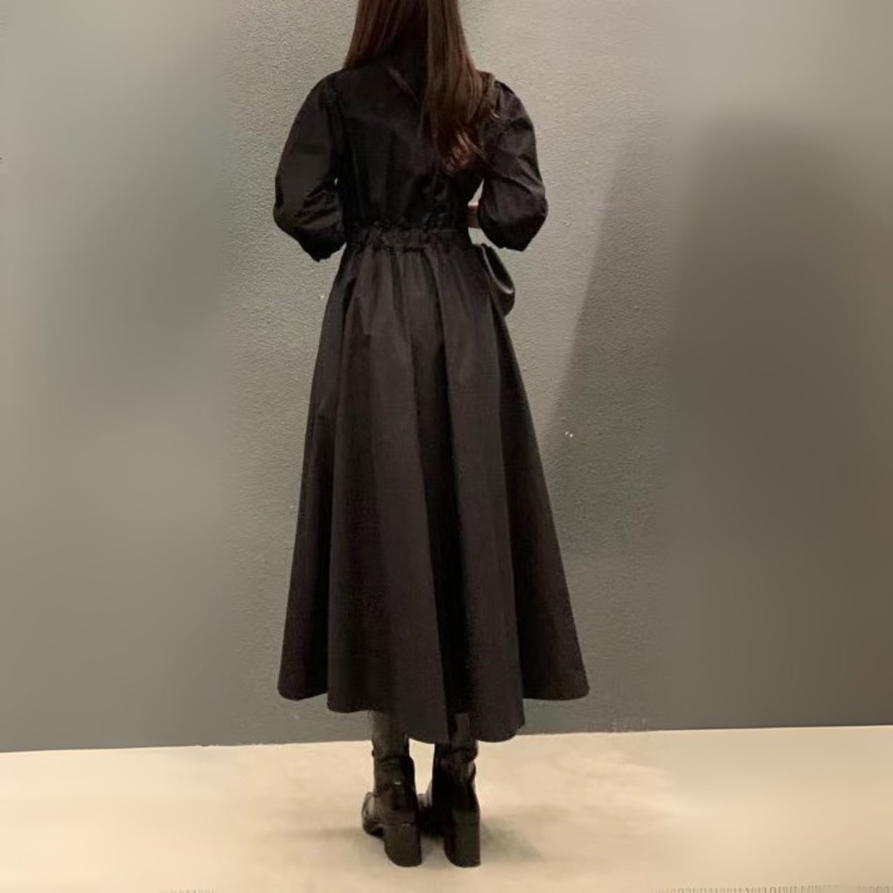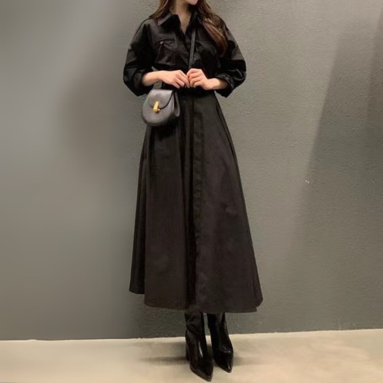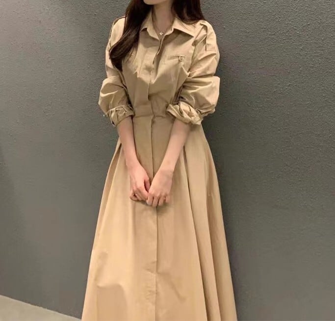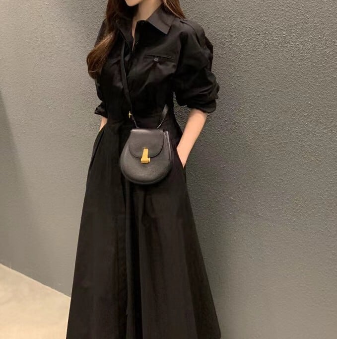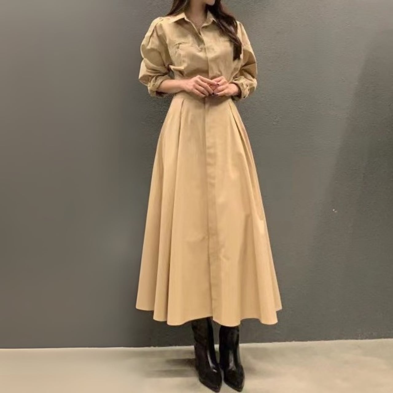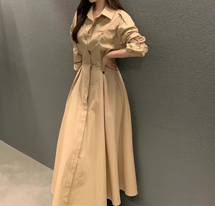 Lapel collar elegant single breast long shirt dress ( 2color )
