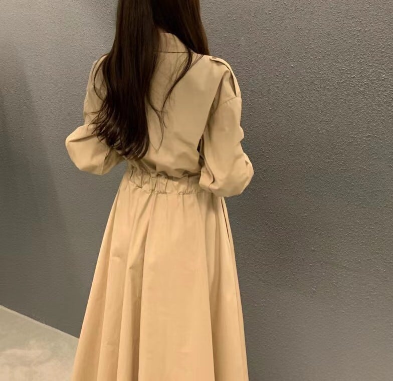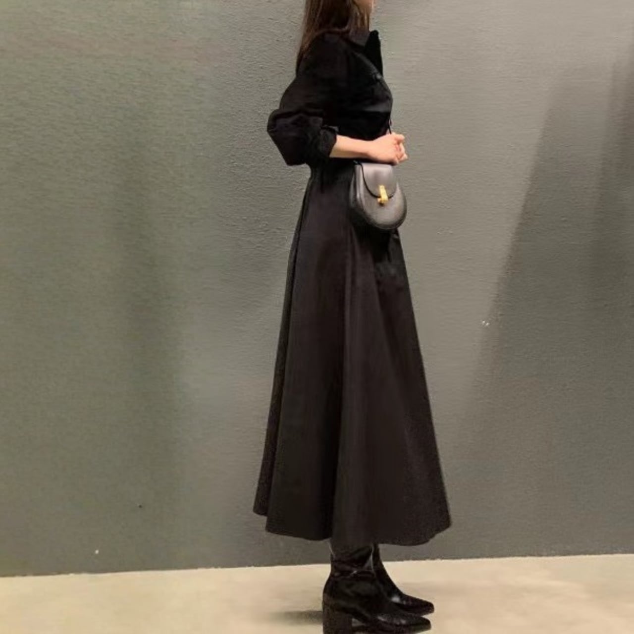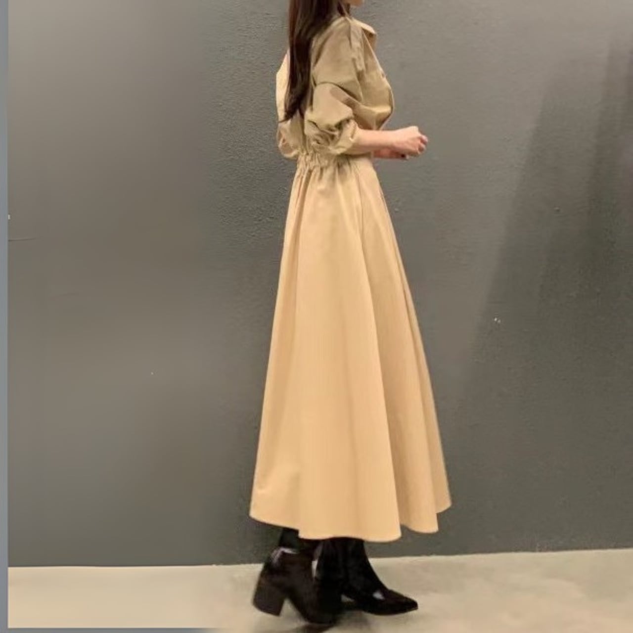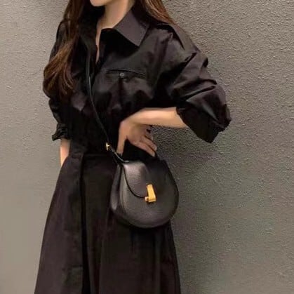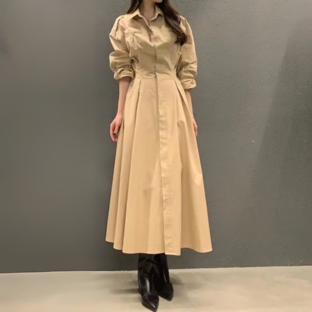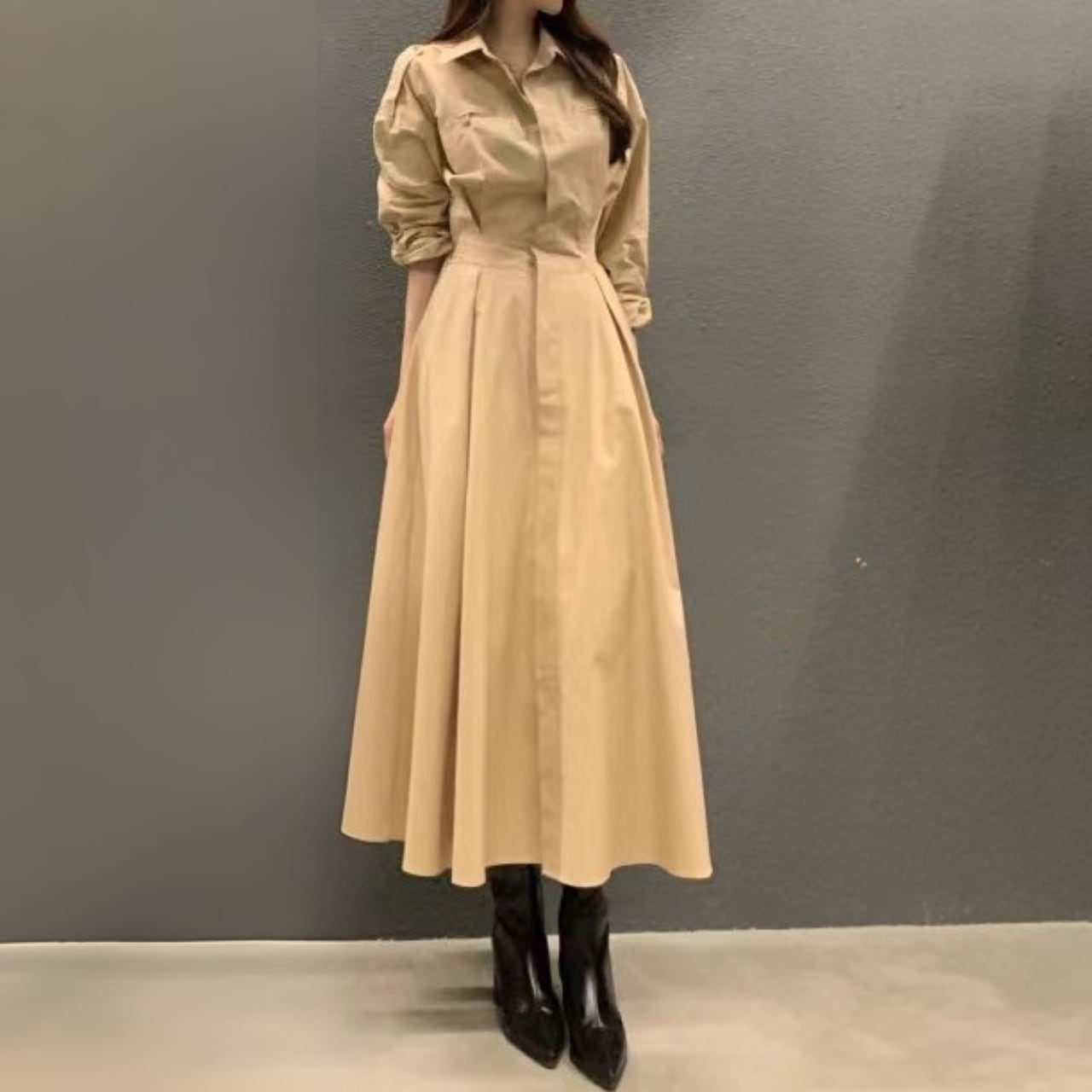 Lapel collar elegant single breast long shirt dress ( 2color )