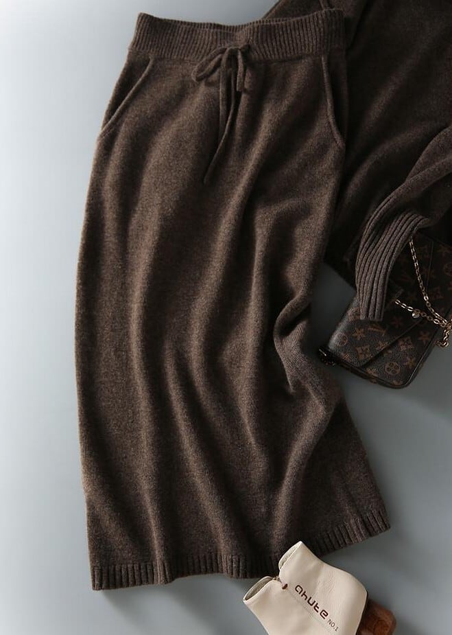 ラウンドネックスリムニットとストラップスリムニットスカートのセット商品です。