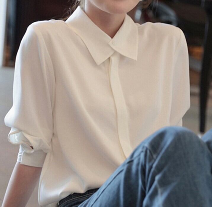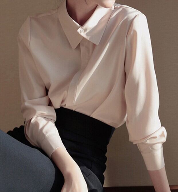 着用するだけでフェミニンな雰囲気が漂うイレギュラーカラーエレガントスリムブラウス。