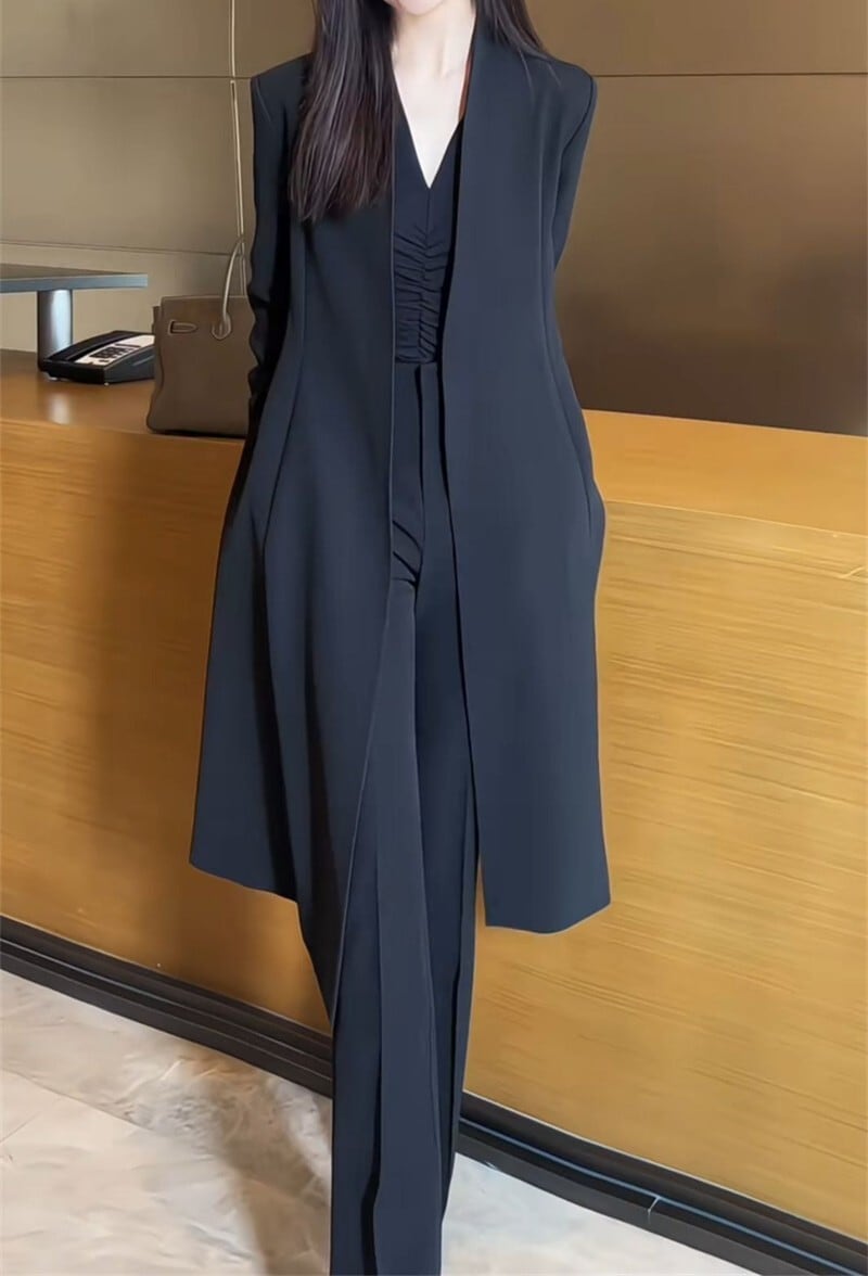 Collarless elegant slim long coat
