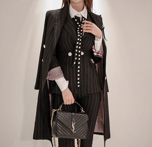 ダブルブレスト、スリムデザインデザインがスタイルを引き締めます。