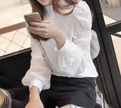 Stand collar elegant puff sleeve chiffon ( 2color )