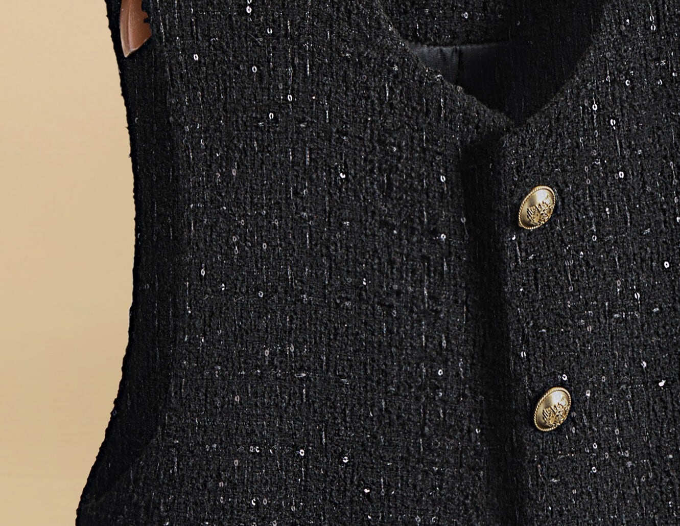 着用するだけでフェミニンな雰囲気が漂うエレガントツイードショートジレ。