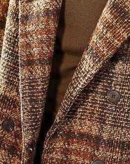 羽織るだけでフェミニンな雰囲気が漂うスーツカラーエレガントダブルブレストチェックウールロングジャケット。