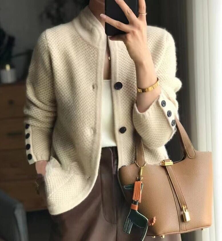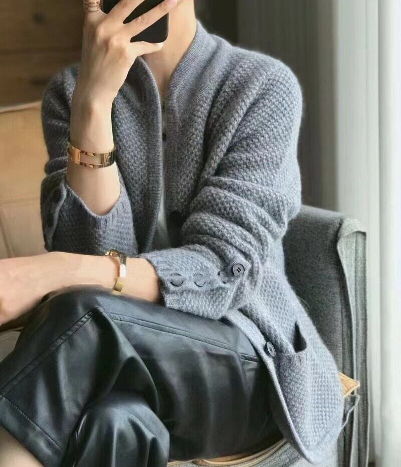 着用するだけでエレガントな雰囲気が漂うスタンドカラーエレガントベルベットウールジャケット。