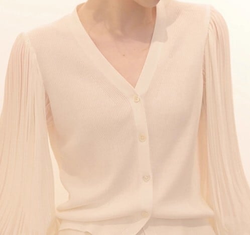 V neck elegant lantern sleeve ice silk cardigan ( 2color )