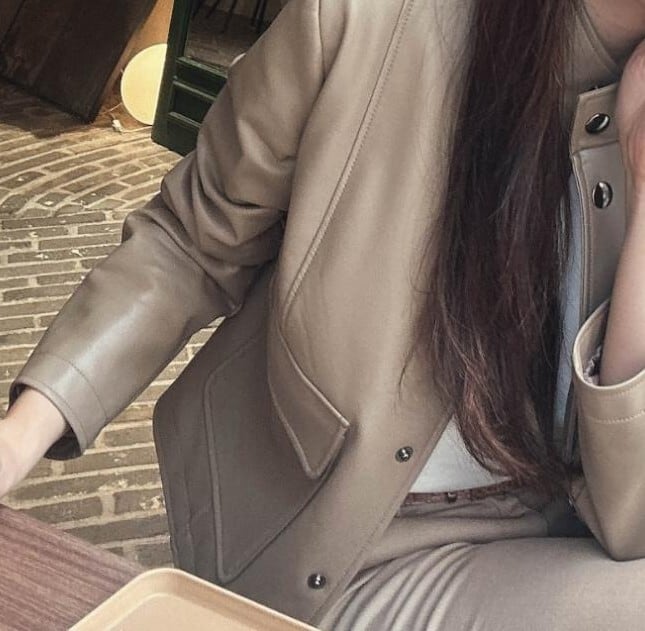 Stand collar elegant faux leather short jacket ( 2color )