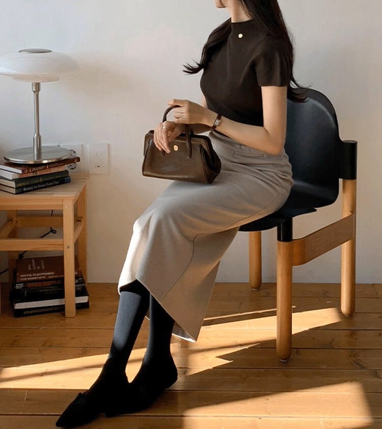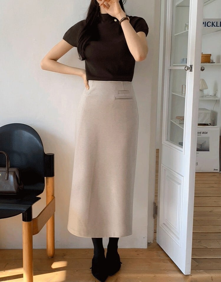 着用するだけで上品で大人可愛い雰囲気が漂うハイウエストエレガントスリムロングスカート。