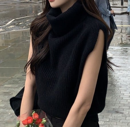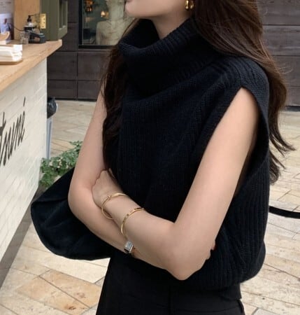 High neck elegant sleeveless slim knit ( 3color )