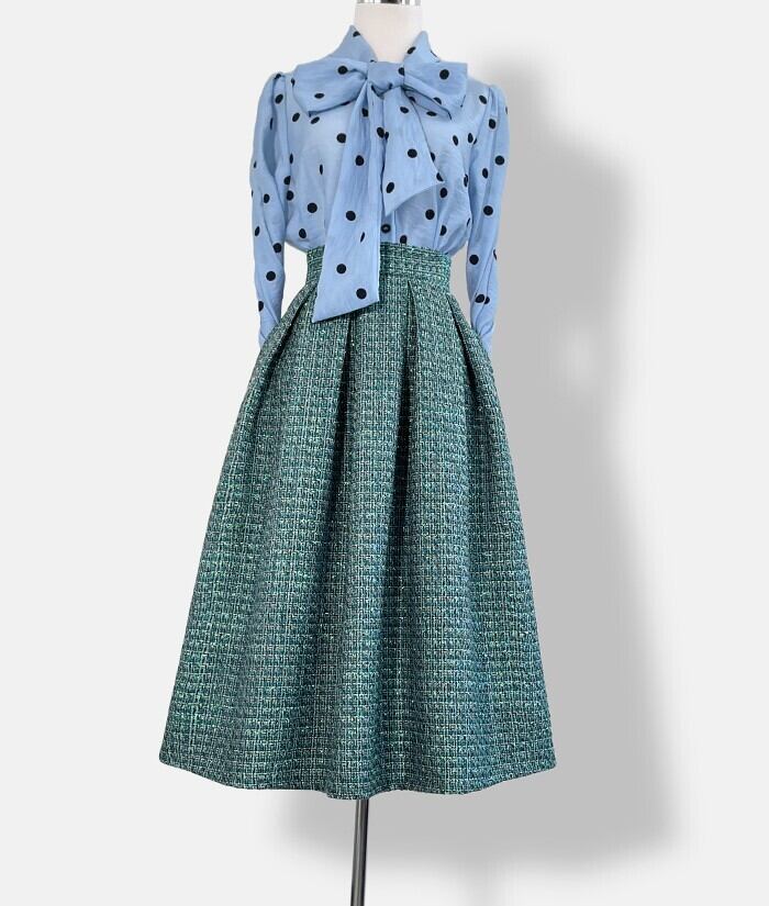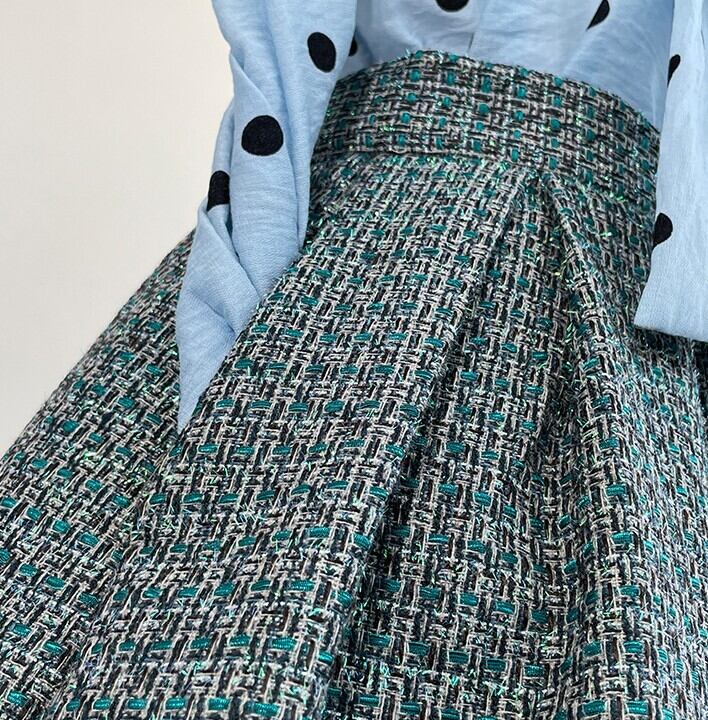 着用するだけで上品でエレガントな雰囲気が漂うハイウエストエレガントスイングツイードスカート。