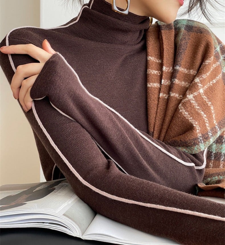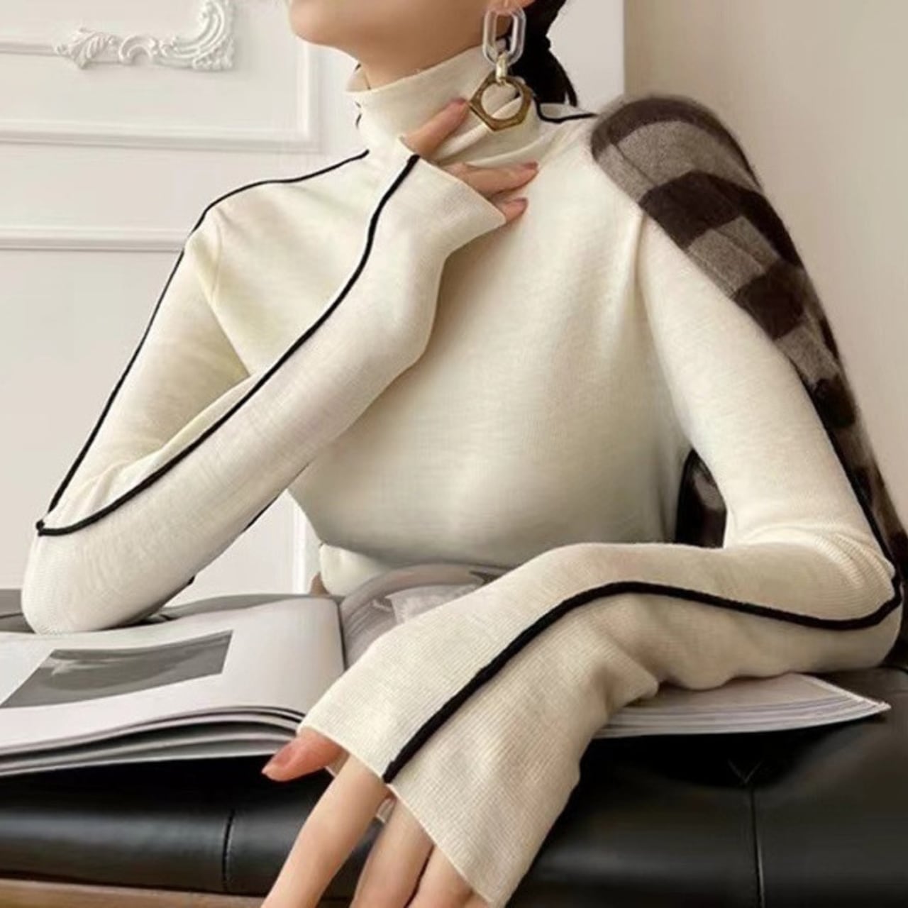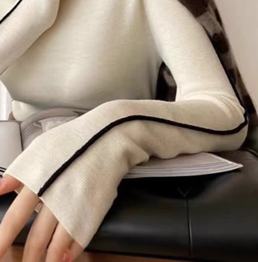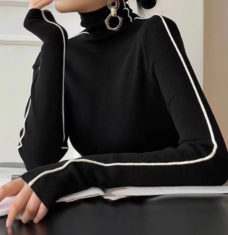 着用するだけでフェミニンな雰囲気が漂うハイネックエレガントスリーブラインベルベットニット。