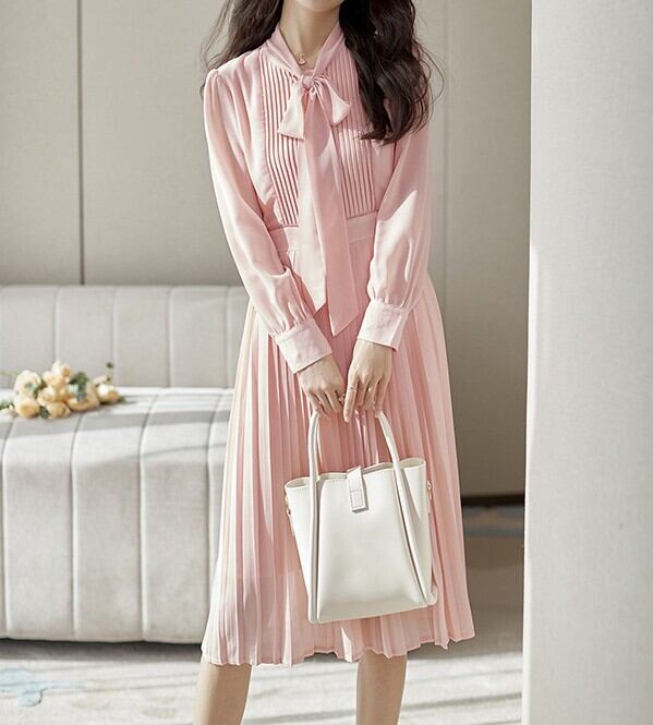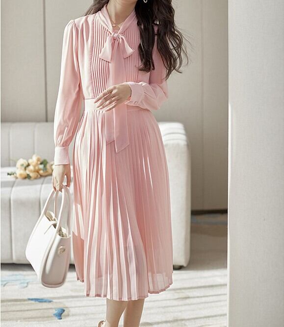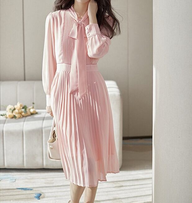 着用するだけでフェミニンな雰囲気が漂うチェストタイエレガントプリーツスイングドレス。