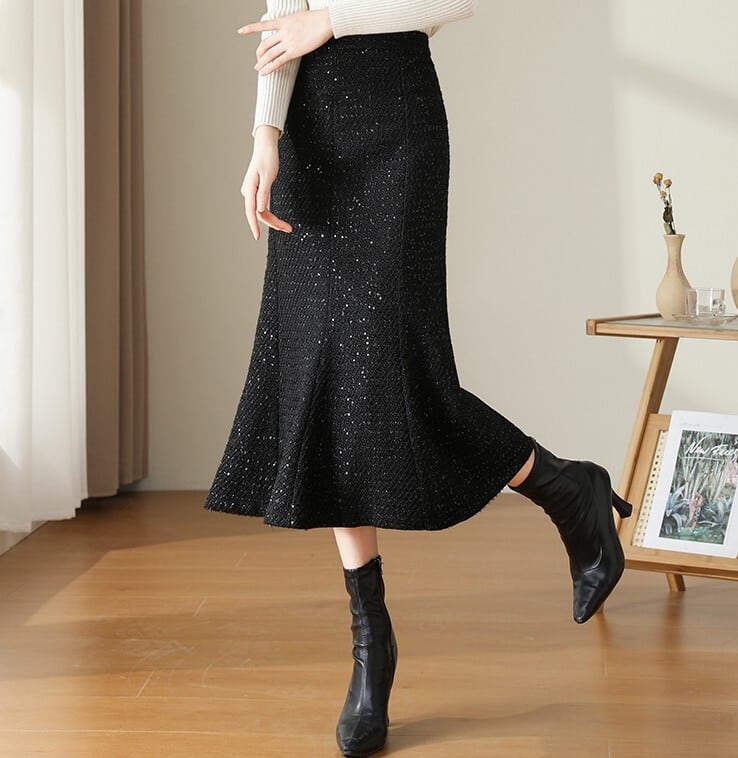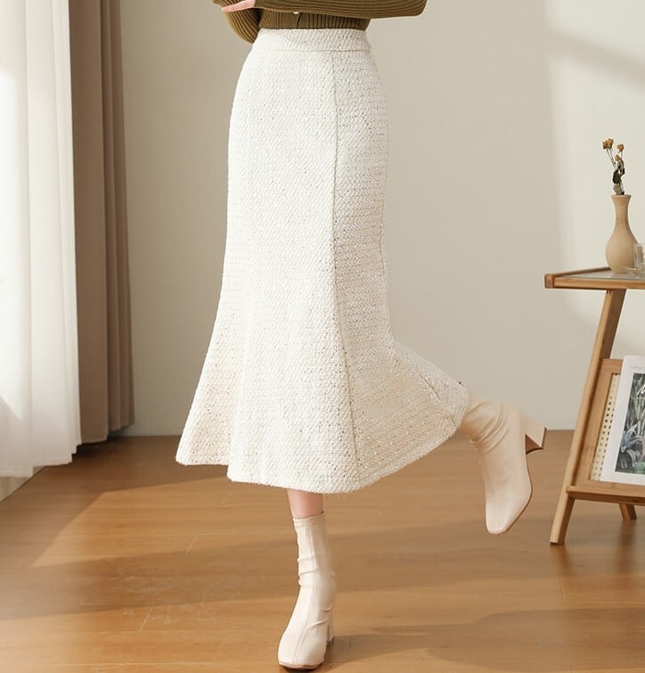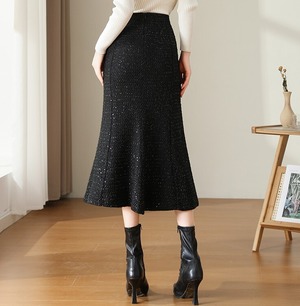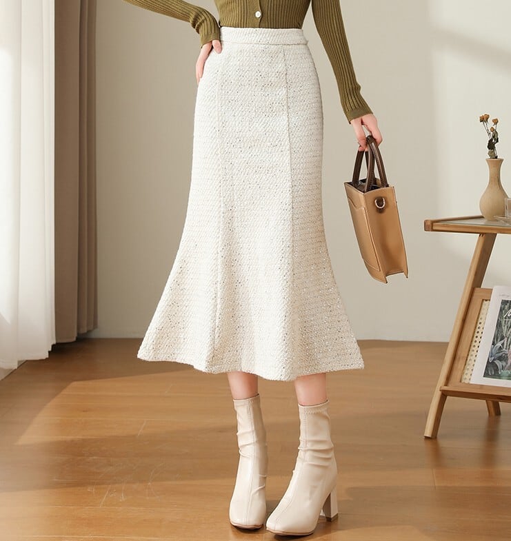 High waist elegant tweed mermaid long skirt