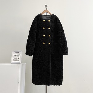 Collarless elegant double breast long lam wool coat ( 4color )