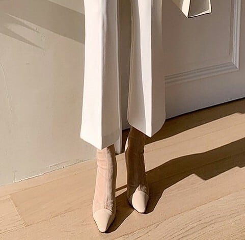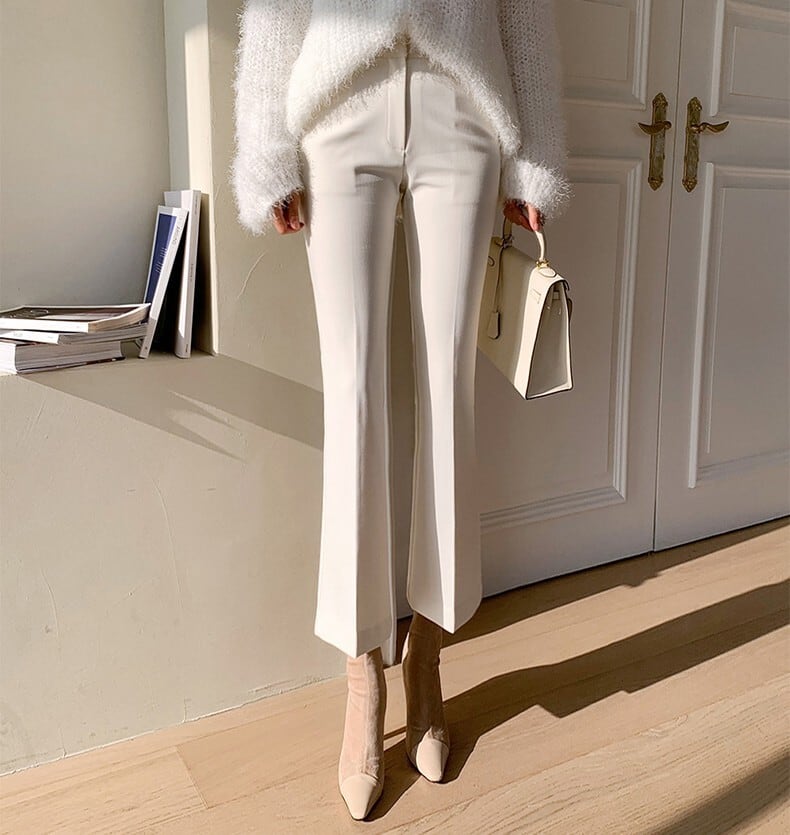 綺麗見えするのにゆったりリラックス感満載のハイウエストエレガントベルベットクロップドフレアパンツ。