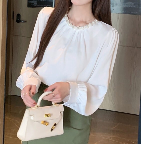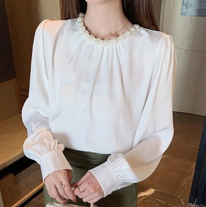 Chest beads elegant chiffon shirt ( 2color )