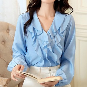 V neck elegant chest ruffle chiffon shirt