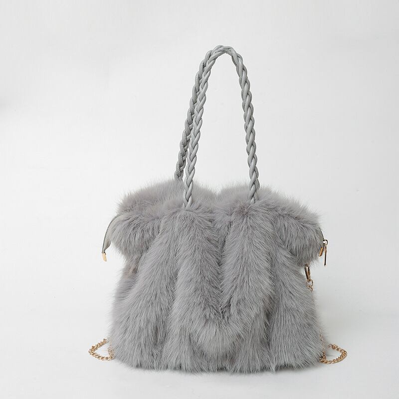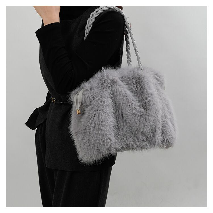 秋、冬のコーディネートを華やかに彩るエレガントファートートバッグ。