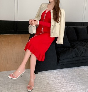 Single breast elegant hem flare slim knit dress ( 4color )
