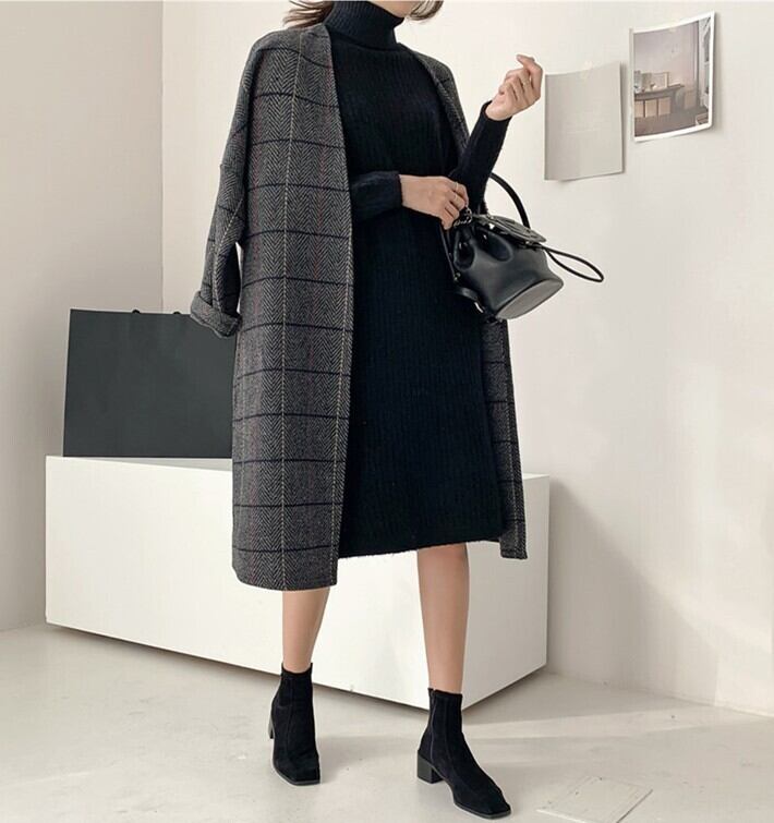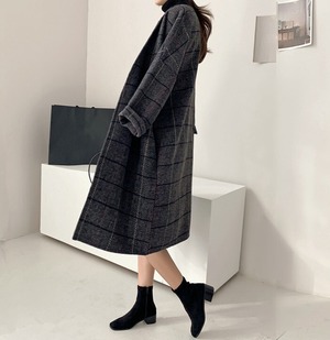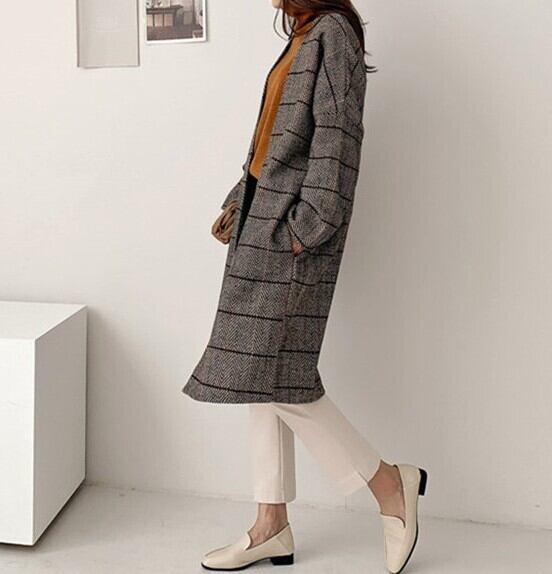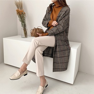 羽織るだけで上品でエレガントな雰囲気が漂うカラーレスエレガントヘリンボーンスリムロングコート。