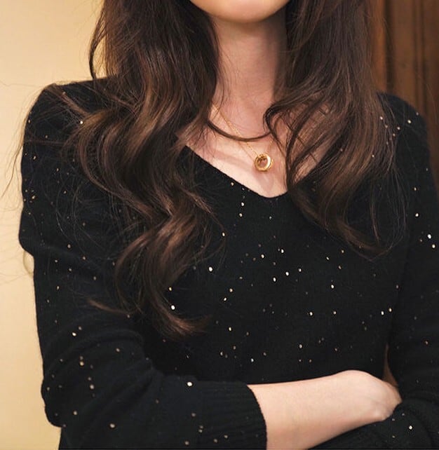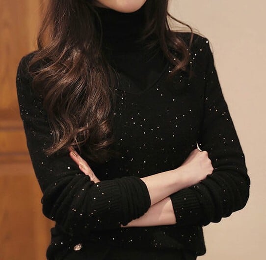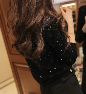 着用するだけでエレガントな雰囲気が漂うVネックエレガントスパンコールスリムニット。