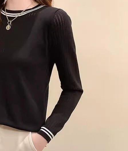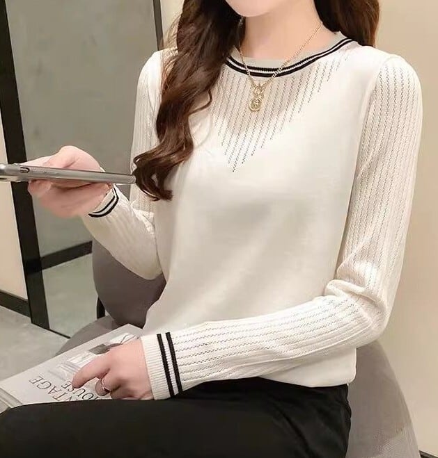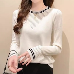 着用するだけで大人可愛い雰囲気が漂うメッシュステッチエレガントレトロスリムニット。