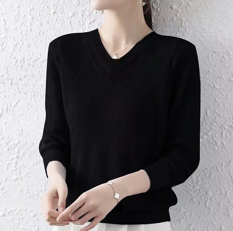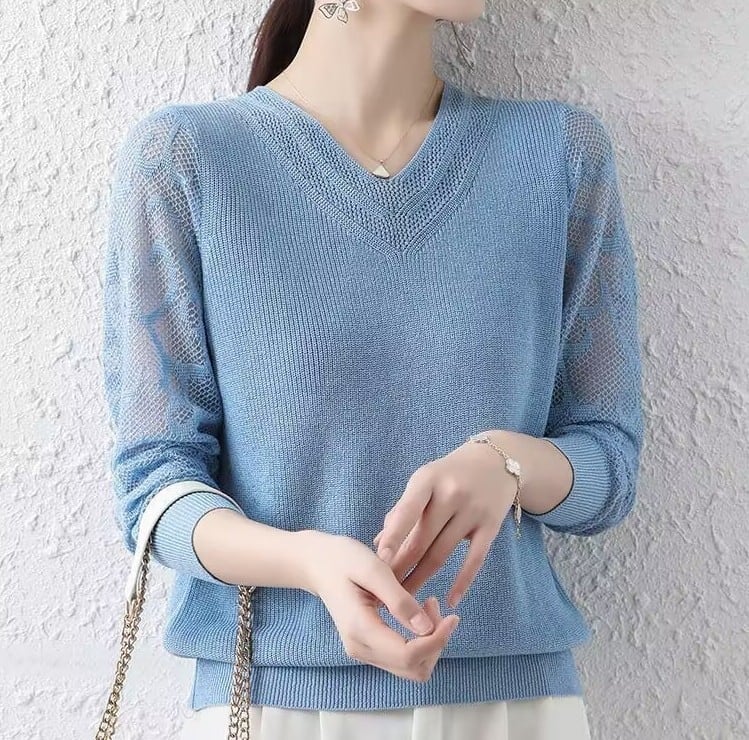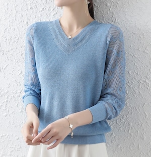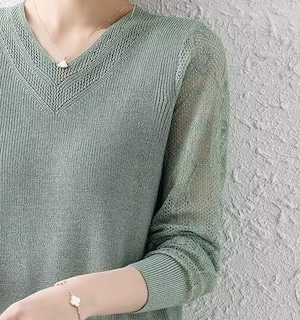 V neck elegant mesh sleeve ice silk knit