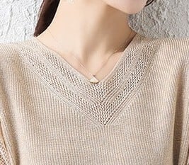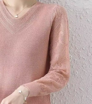 着用するだけで大人可愛い雰囲気が漂うVネックエレガントメッシュスリーブアイスシルクニット。