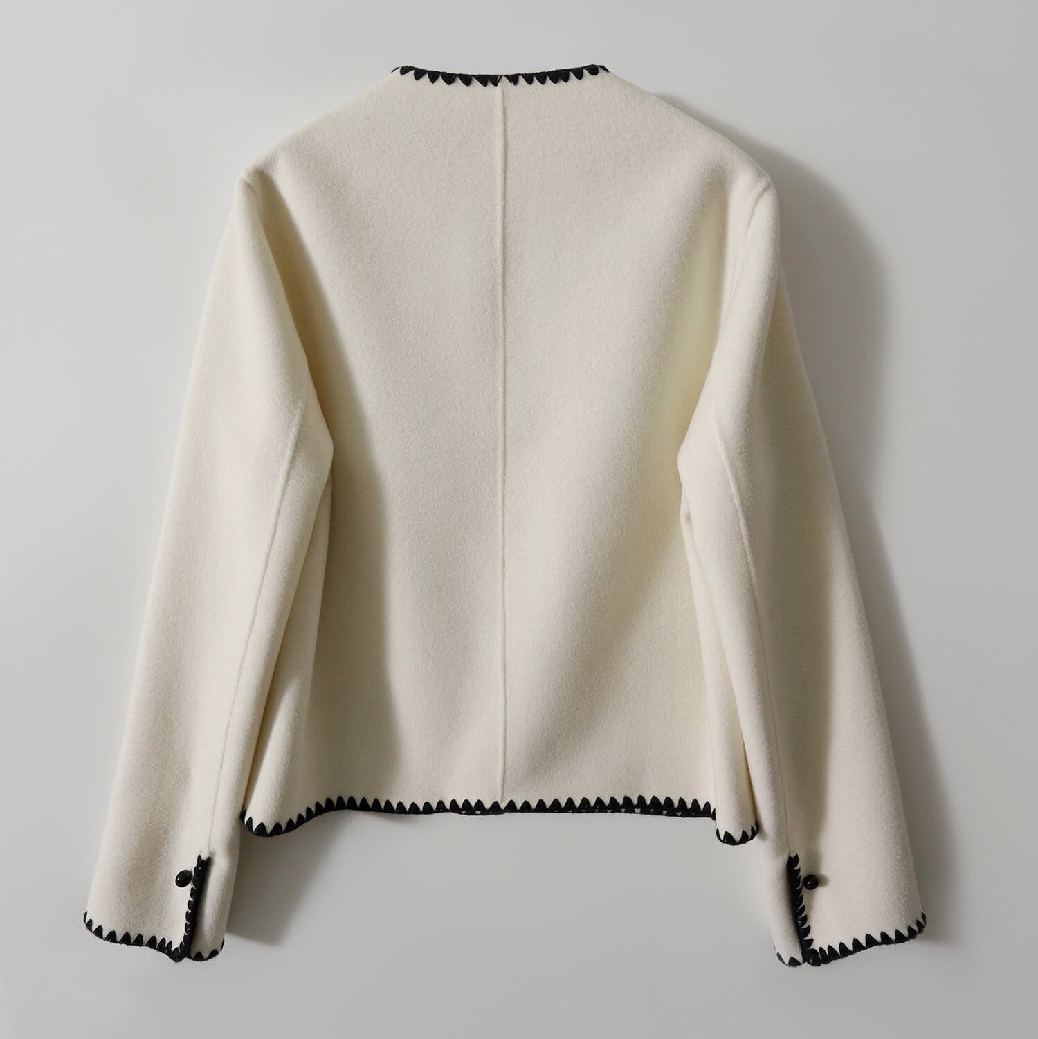 羽織るだけでフェミニンな雰囲気が漂うカラーレスエレガントレトロスリムジャケット。