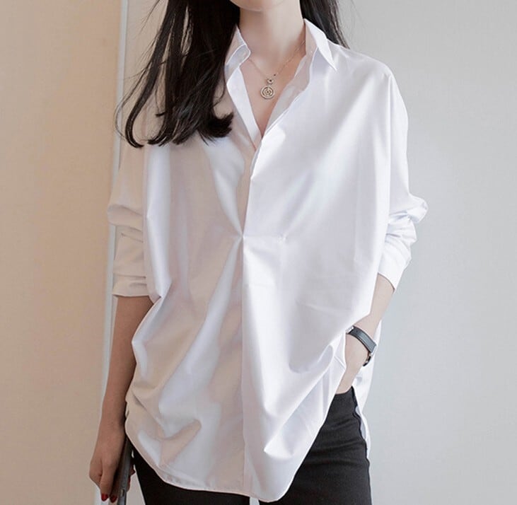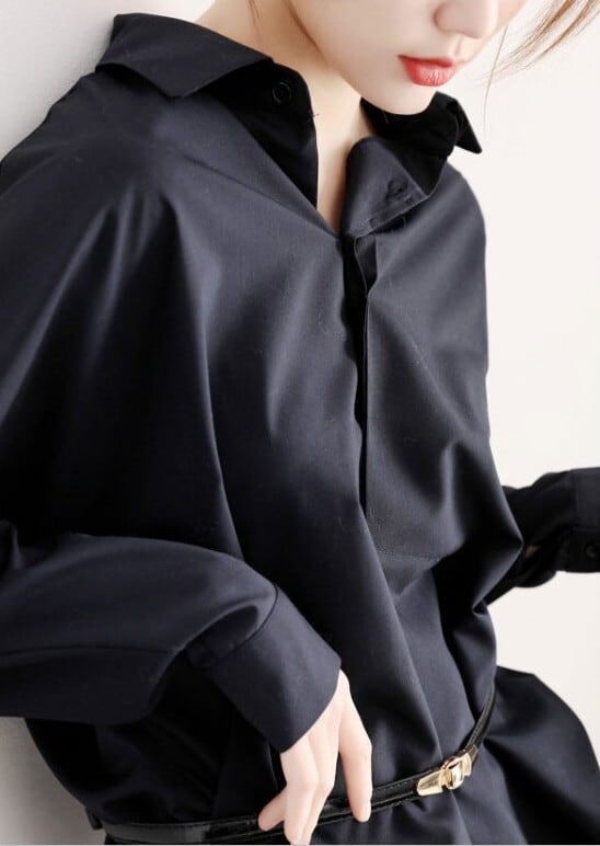 着用するだけでフェミニンな雰囲気が漂うラペルカラーエレガントドレープシャツ。