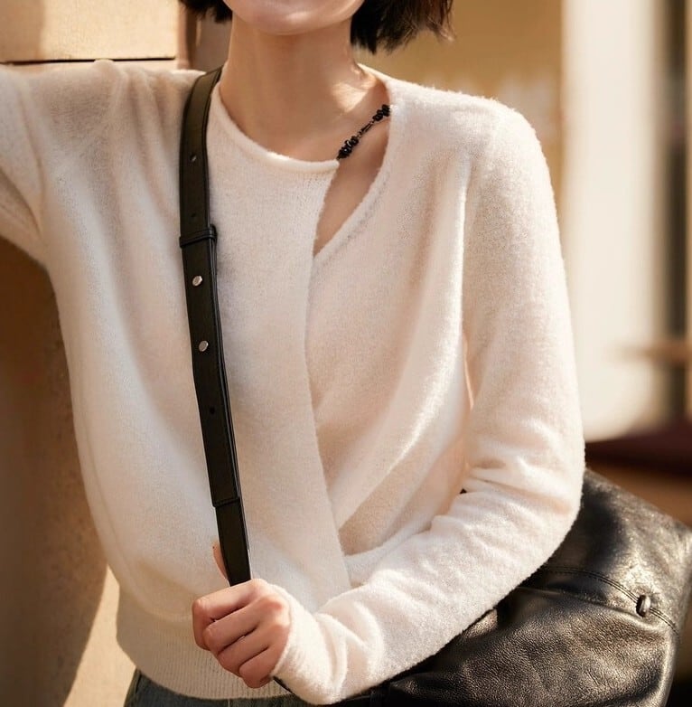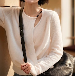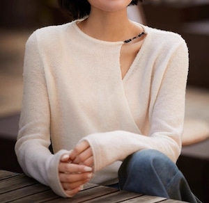 着用するだけでフェミニンな雰囲気が漂うワンショルダーエレガントアシンメトリックニット。